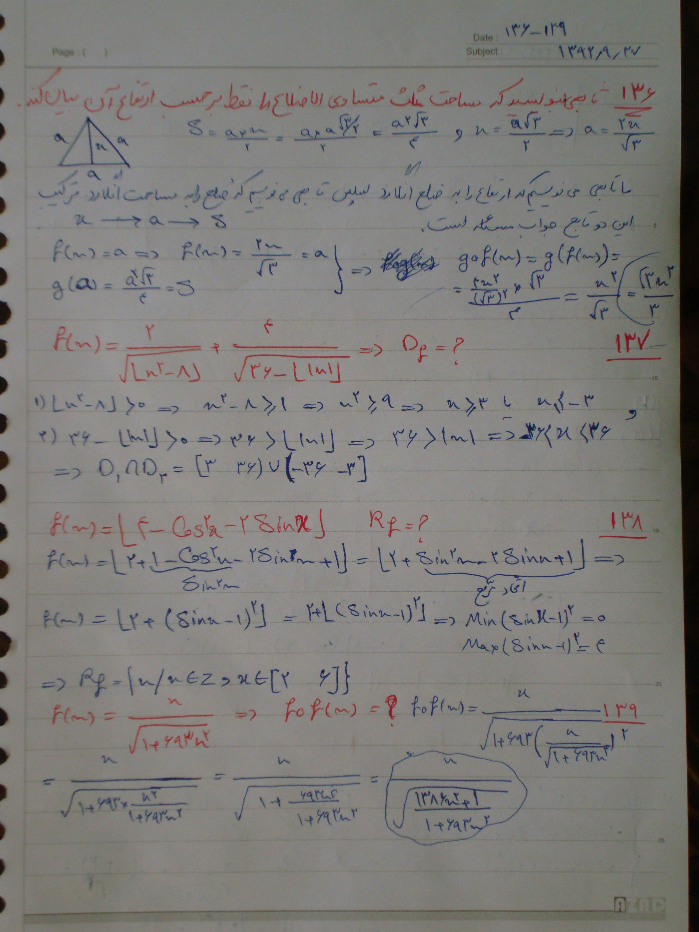 سوال ١٠٨ برد تابع از ٠/٥ تا بی نهایت، برا امتحانش می تونی رو دامنه x کار کنی تا به تابع برسی یا می تونی کمترین مقدار دامنه رو تو تابع قرار بدی تا ببینی نتیجت اشتباس!